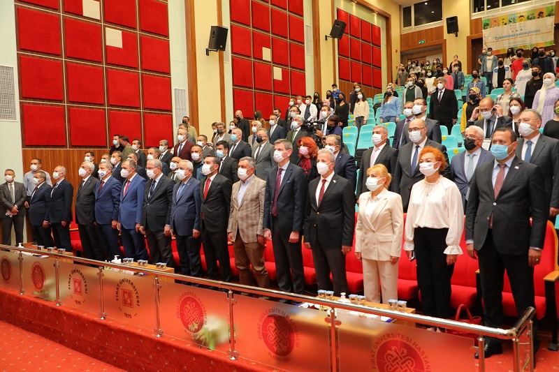 Governor of Elazig Ömer TORAMAN, Deputy Minister of Agriculture and Forestry Mehmet Hadi TUNÇ, Mayor of Elazig Şahin ŞERİFOĞULLARI, FAO Turkey Representative Viorel GUTU, World Health Organization Turkey Program Director Prof. Dr. Toker ERGÜDER, Rector of our University Prof. Dr. Fahrettin GÖKTAŞ, Gazi University Rector Prof. Dr. Musa YILDIZ, Rector of the University of Health Sciences Prof. Dr. Cevdet ERDÖL, Vice Rector of our University Prof. Dr. Bilal ÜSTÜNDAĞ, Chief Physician of our University Hospital Prof. Dr. İrfan KAYGUSUZ, guests and students attended the program, which started in the Conference Hall of our University Hospital.