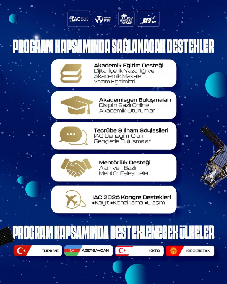 Türkiye’de geliştirilen projelerin ve özellikle TEKNOFEST kuşağının çalışmalarının bu platformda yer almasını çok önemsiyoruz. Bu kapsamda, IAC 2026’da kabul alan ekipler için T3 Vakfı tarafından eğitim, mentör, ulaşım, konaklama ve katılım ücreti desteği sağlanacaktır.