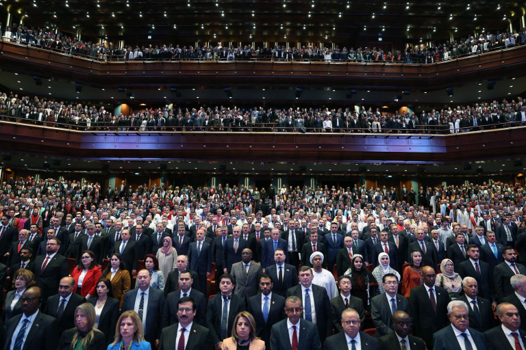 Cumhurbaşkanı Recep Tayyip Erdoğan törende yaptığı konuşmada, köklü bir mazinin, büyük bir medeniyetin, alim, arif ve eğitim kurumlarımızla çok zengin bir müktesebatın varisleri olduğumuza dikkati çekerek, özetle “İlhamını geçmişten alan parlak bir geleceği inşa etmek, Türkiye’nin yükseköğretimde ulaştığı seviyeyi yukarılara çıkarmak için kararlı bir şekilde çalışıyoruz. Teknik ve fiziki alt yapıdan eğitim kadrosuna, müfredattan yurt ve barınma imkânlarına kadar her alanda yepyeni bir vizyonla hareket ediyoruz. Nereden nereye geldiğimizi görebilmek adına çok kısa bir şekilde bazı rakamları sizlerle paylaşmak istiyorum. 2002’de yükseköğretime ayrılan bütçe yalnızca 2,5 milyar liraydı; bugün yükseköğretim bütçemiz tam 488,5 milyar liraya ulaştı. 23 yıl önce üniversite sayımız 76’ydı. Bugün 81 ilimizin tamamında 79’u vakıf, 129’u devlet üniversitesi olmak üzere 208 yükseköğretim kurumumuz var.” değerlendirmesinde bulundu.