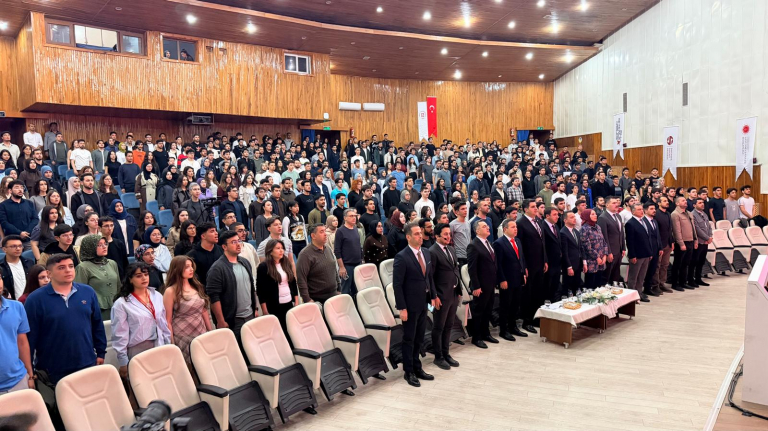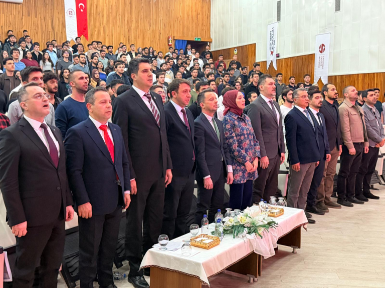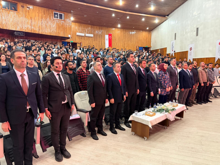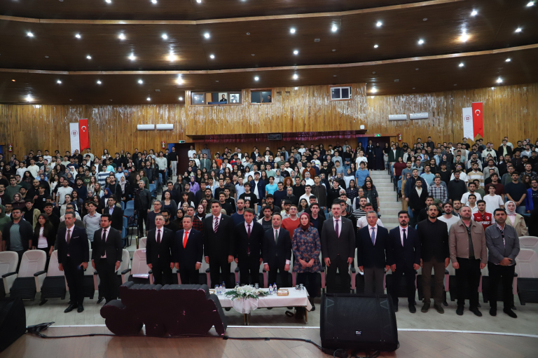 Üniversitemiz Atatürk Kültür Merkezi’nde düzenlenen programa; Rektör Yardımcımız Prof. Dr. Mehmet Yılmaz’ın yanı sıra ASELSAN, TUSAŞ ve ROKETSAN’dan yetkililer, akademisyenler ve çok sayıda öğrenci katıldı.
