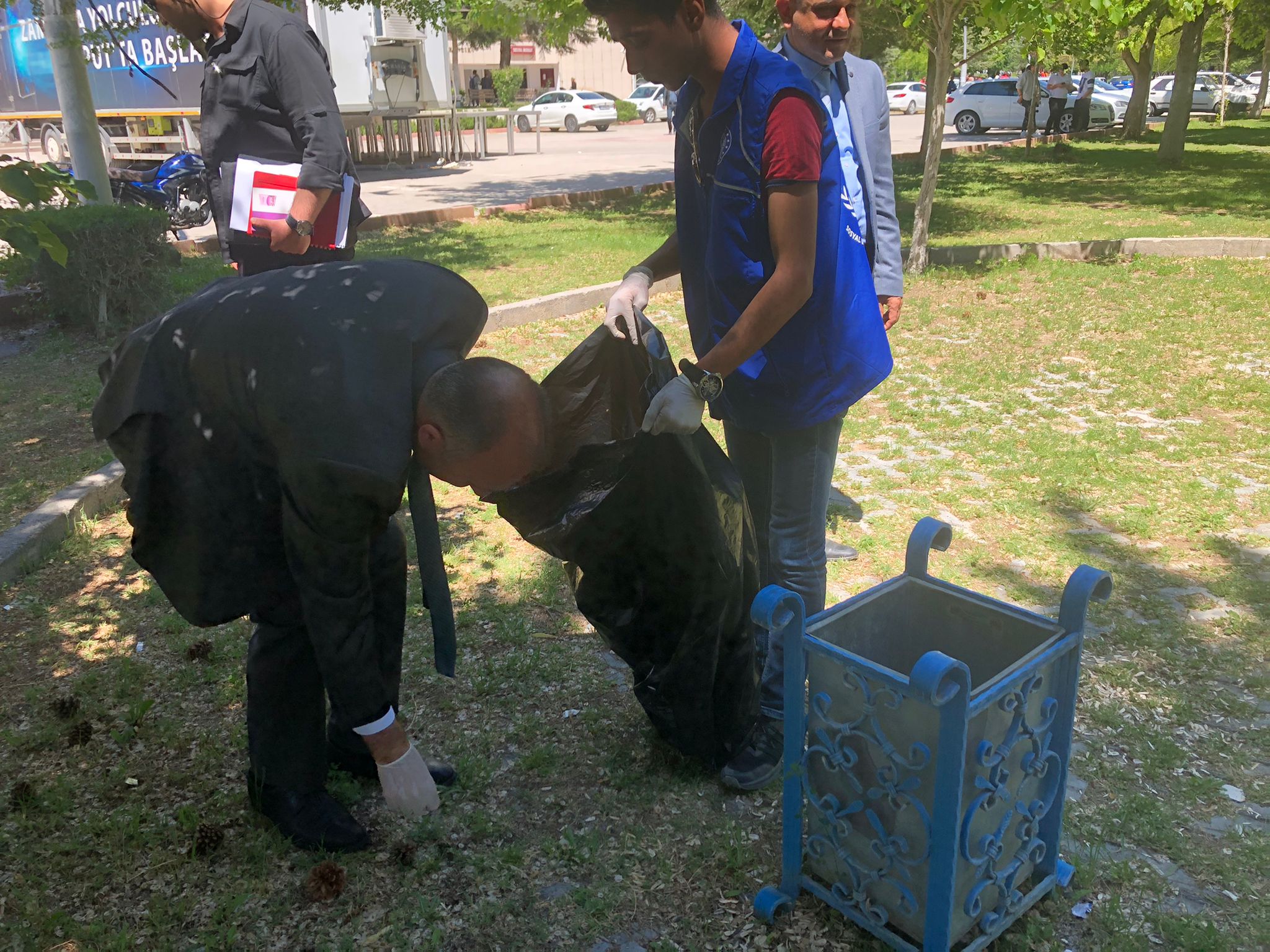 Rektör Prof. Dr. GÖKTAŞ eline eldivenleri takarak öğrencilerle birlikte kampüste çöp topladı.