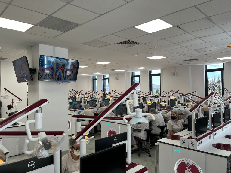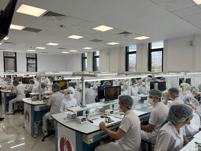 Törenin açılış konuşmasını yapan Üniversitemiz Rektörü Prof. Dr. Fahrettin Göktaş, üniversitenin vizyonunu yansıtan bu yatırımın hem eğitim hem de sağlık hizmetlerini bir arada sunacak şekilde planlandığını vurguladı. Yaklaşık 17 bin metrekare kapalı alana sahip binada; her biri 150 kişilik 4 amfi, konferans salonu, 120 kişilik preklinik laboratuvarı, 140 kişilik fantom laboratuvarı, sterilizasyon alanları ve sosyal donatı alanlarının yer aldığını ifade eden Göktaş, modern altyapısıyla öğrencilerin nitelikli bir eğitim ortamına kavuştuğunu belirtti.