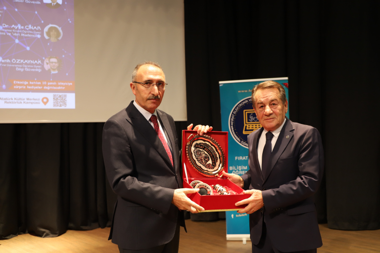 Kongre sonunda Üniversitemiz Rektörü Prof. Dr. Fahrettin GÖKTAŞ tarafından günün anısına Türkiye Bilişim Derneği Genel Başkanı Rahmi AKTEPE’ye teşekkür plaketi takdim edildi.