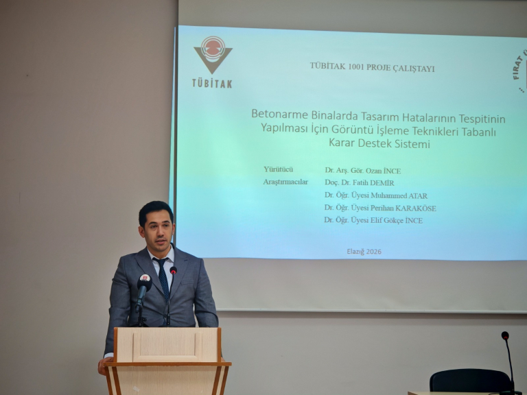 Üniversitemiz Mühendislik Fakültesi İnşaat Mühendisliği Bölümü öğretim elemanlarından Dr. Arş. Gör. Ozan İNCE yürütücülüğünde devam eden TÜBİTAK 1001 projesi kapsamında, “Betonarme Binalarda Tasarım Hatalarının Tespitinin Yapılması İçin Görüntü İşleme Teknikleri Tabanlı Karar Destek Sistemi” başlıklı bir çalıştay düzenlendi.