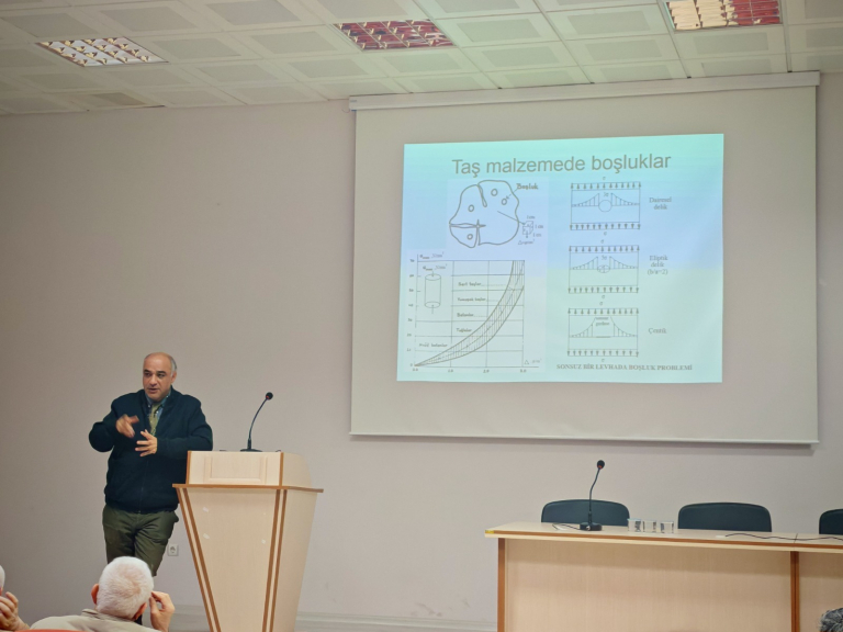 Çalıştayda, betonarme binaların depreme dayanıklı tasarımı üzerine kapsamlı sunumlar yapıldı. Prof. Ragıp İNCE tarafından gerçekleştirilen “Betonarme Binalarda Malzeme Kusurları” başlıklı sunumda, uygulamada karşılaşılan hatalar ve çözüm önerileri ele alındı.