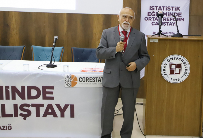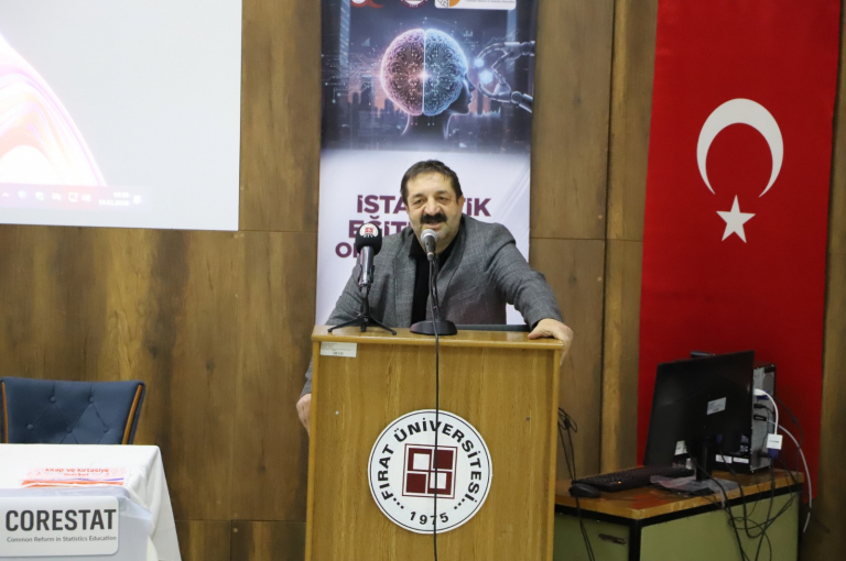 Türkiye’nin güzide üniversitelerinden birbirinden değerli onlarca bilim insanını ağırlamaktan duyduğu memnuniyeti dile getiren Fırat Üniversitesi Rektör Yardımcısı Prof. Dr. Mahmut Doğru, “İstatistik bilimi olmadan hiçbir bilim dalı düzgün işleyemez.” diyerek çalıştaya katkı sunan tüm paydaşlara teşekkürlerini iletti.