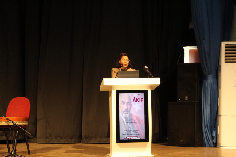 “Mehmet Âkif’i Anlamak” konulu konferansta konuşmacı olarak yer alan İnsan ve Toplum Bilimleri Fakültesi Öğretim Üyesi Prof. Dr. Beyhan Kanter, Mehmet Âkif Ersoy’un yaşamı ve eserleri hakkında kapsamlı bilgiler paylaştı. Prof. Dr. Kanter, Mehmet Âkif Ersoy’un edebiyatla kurduğu güçlü bağa dikkat çekerek, milli kimliğimizin inşasında ve edebî mirasımızdaki önemini vurguladı.