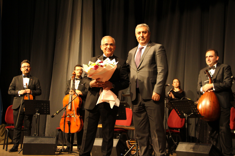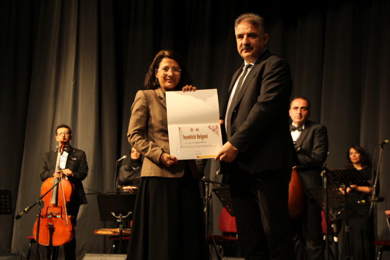 Konser sonunda Prof. Dr. Beyhan Kanter ve Koro Şefi Kenan Çimtay’a Rektör Vekili Prof. Dr. İrfan Kaygusuz tarafından çiçek takdim edildi.