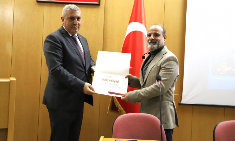 Öfke yönetimi ve kontrol mekanizmaları hakkında değerli bilgilerin paylaşıldığı programın sonunda, Rektör Vekilimiz Prof. Dr. İrfan Kaygusuz tarafından Prof. Dr. Murad Atmaca’ya katılımlarından dolayı teşekkür belgesi takdim edildi