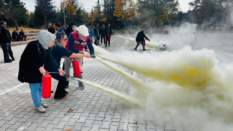Üniversitemiz Sivil Savunma Uzmanlığı tarafından, üniversite personeline yönelik olası yangın durumlarına karşı bilinçlendirme amacıyla yangın tatbikatı gerçekleştirildi. Tatbikatla, yangın anında can ve mal kaybını en aza indirmek hedeflendi.
